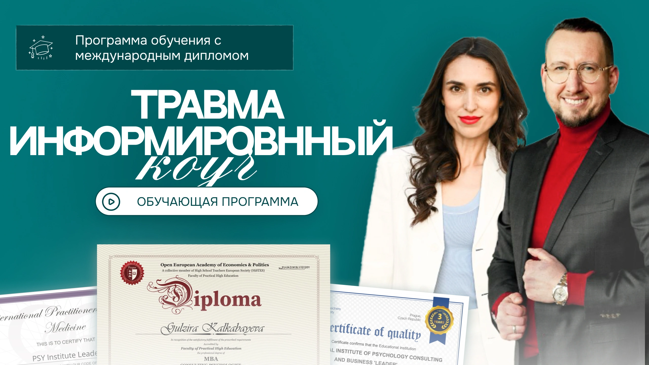 ТРАВМА-ИНФОРМИРОВАННЫЙ КОУЧ - освойте подход, который объединяет глубину, этику и результат, и станьте коучем нового поколения, работающим с причинами, а не симптомами. Вы научитесь бережно и эффективно сопровождать клиентов, помогая им достигать устойчивых изменений в жизни. Международная сертификация и системные навыки позволят вам уверенно развиваться и выйти на доход от 3000 евро в месяц.