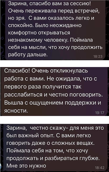 Я помню это волнение перед первой сессией. Но уже после неё я поняла, зря волновалась. Я увидела как человеку стало легче и после 2–3 клиентов меня начали рекомендовать.